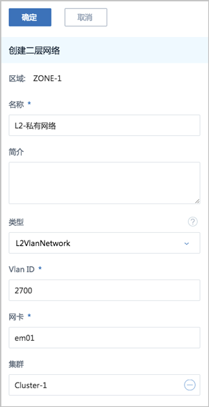 - 创建二层私有网络,并加载此二层网络到相应集群。