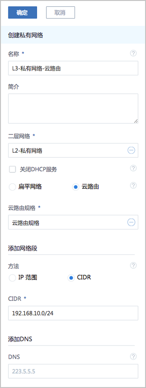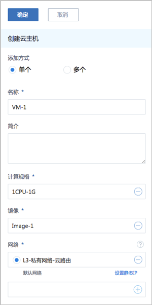 - 使用此私有网络创建云主机,创建云主机过程中会自动创建云路由器,云路由器会提供云路由网络的各种网络服务。