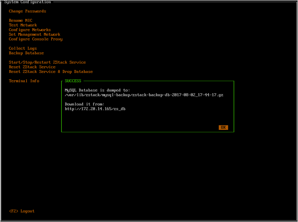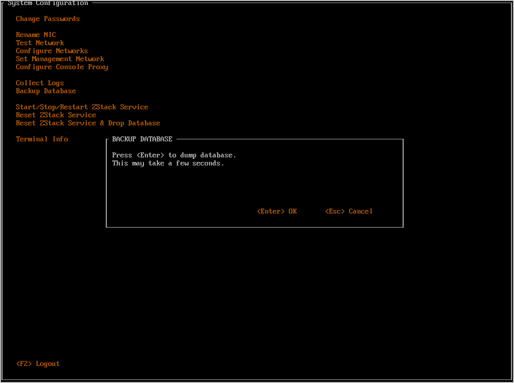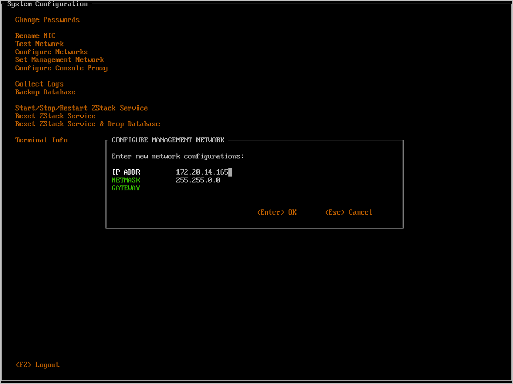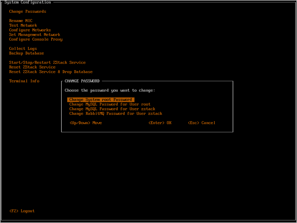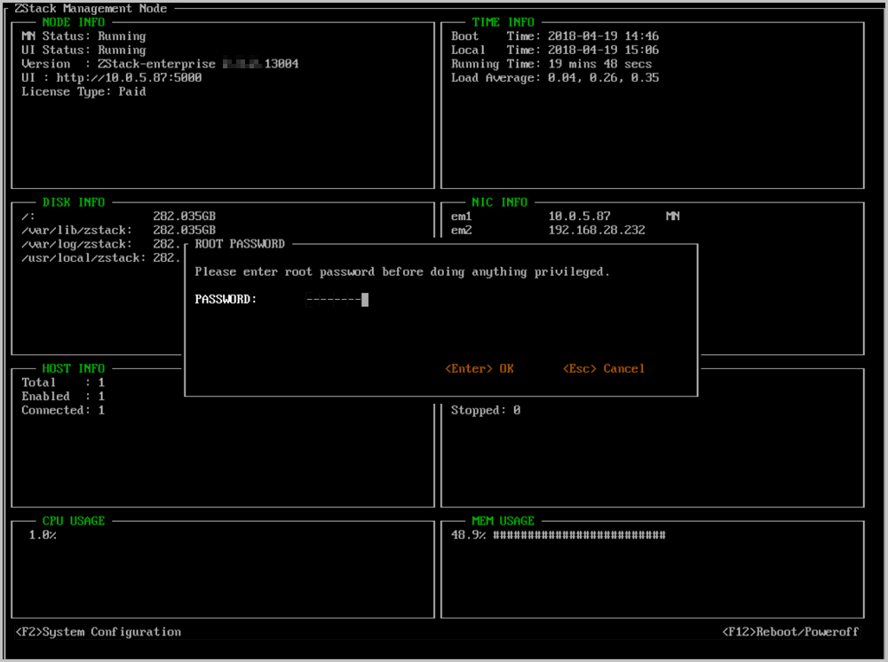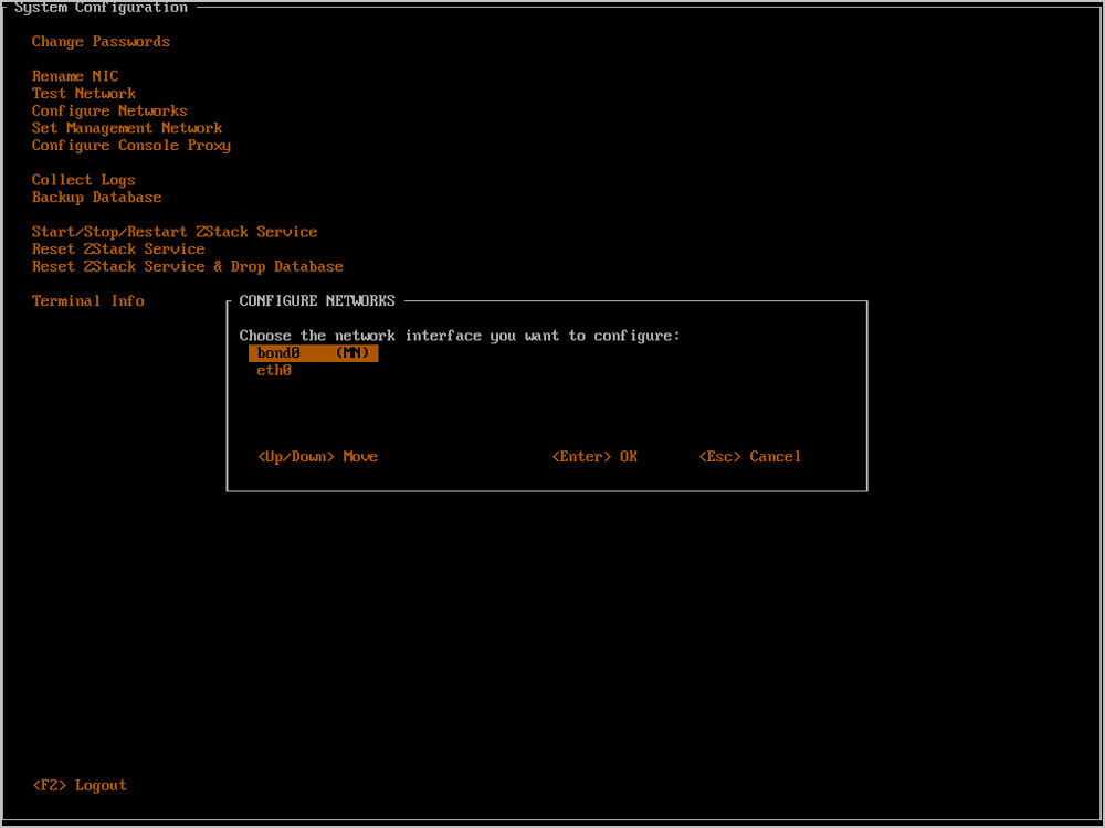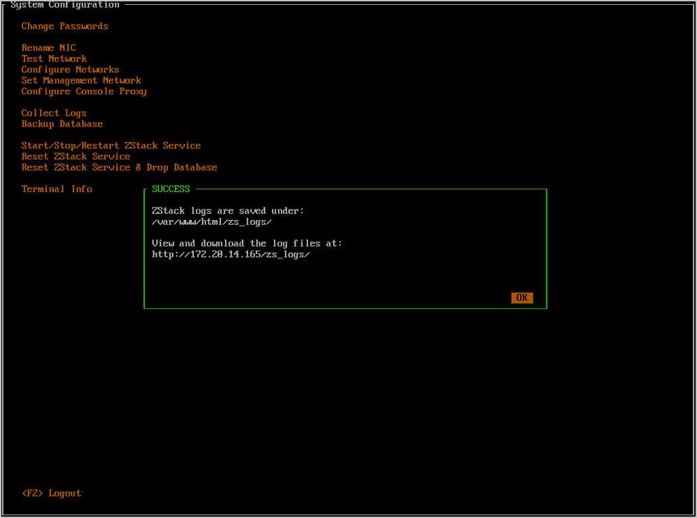- 任何时候都可以通过按下Ctrl + Alt + F1返回ZStack TUI。如Figure 32所示