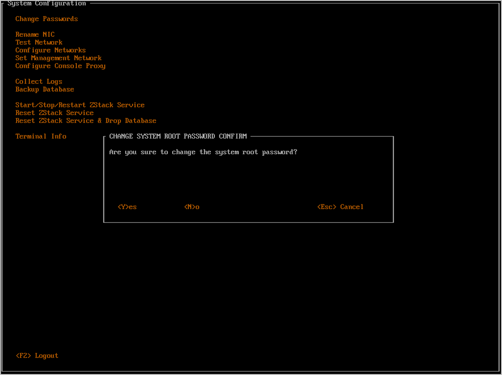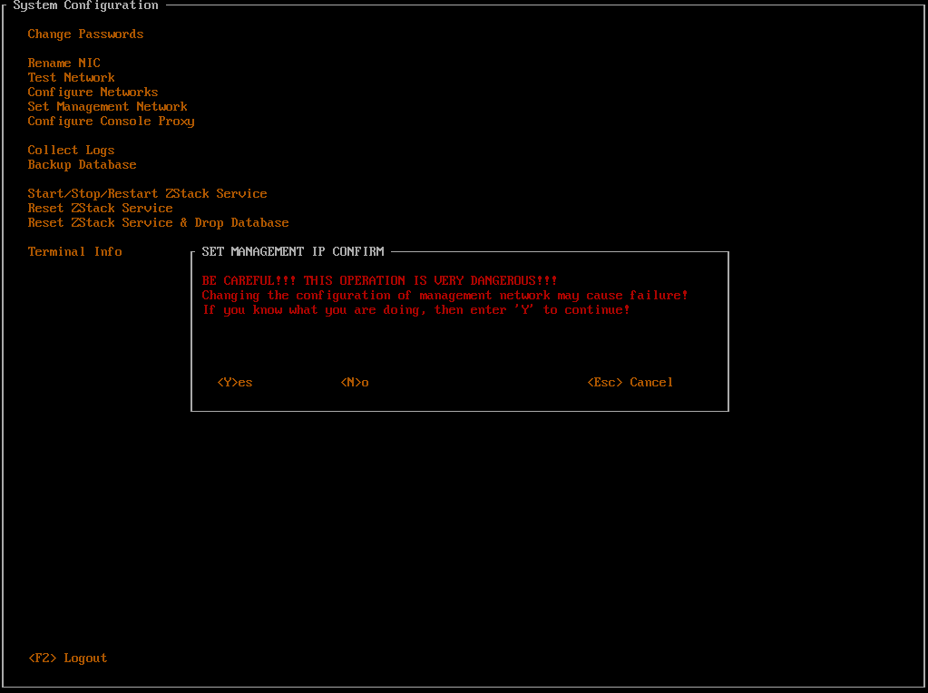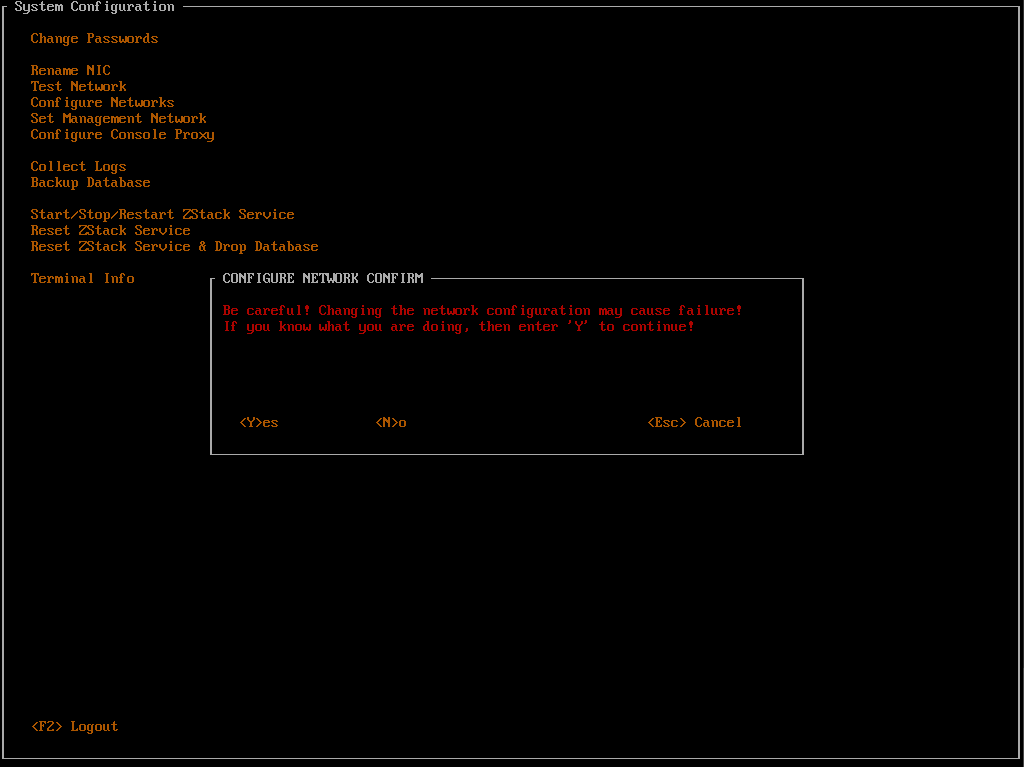 - 此操作需要重启ZStack服务,耗时较长,需要用户按Y键确认。