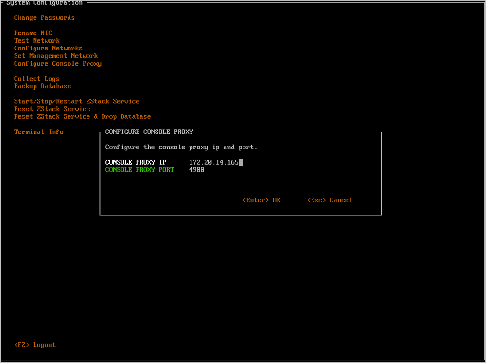 将光标移动至Configure Console Proxy处,按下回车,即可进入终端代理配置窗口。