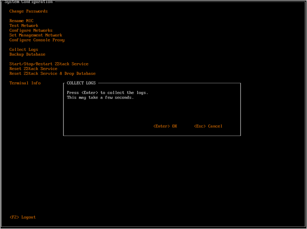 将光标移动至Collect Logs处,按下回车,即可进入日志收集窗口。