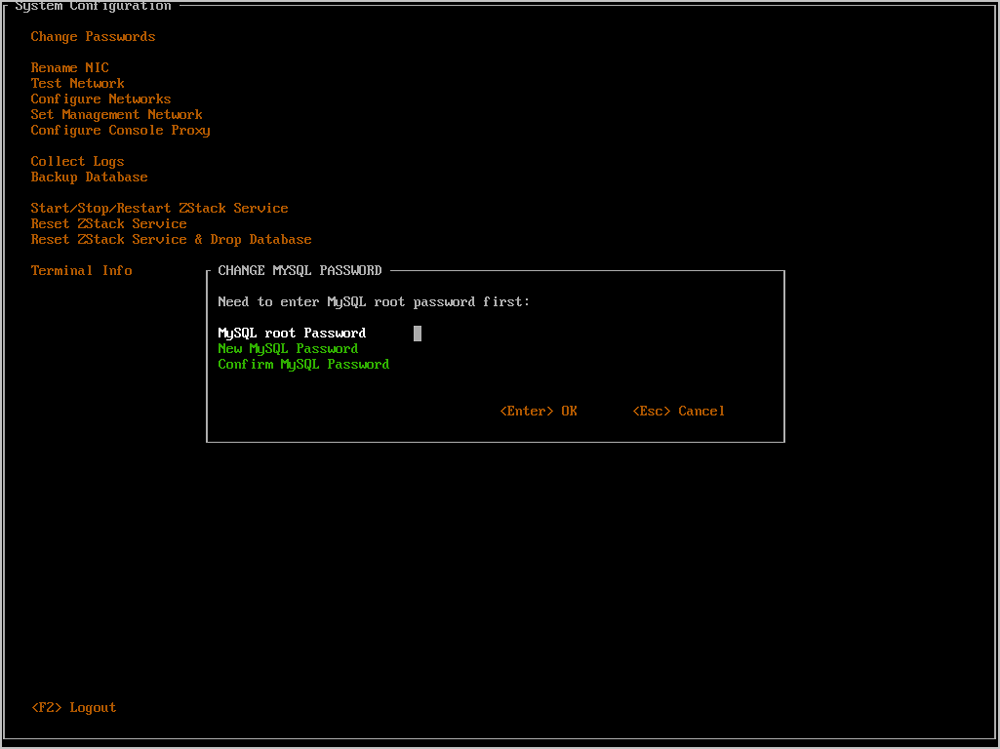 Figure 11. 修改root账号/ZStack账号的MySQL密码