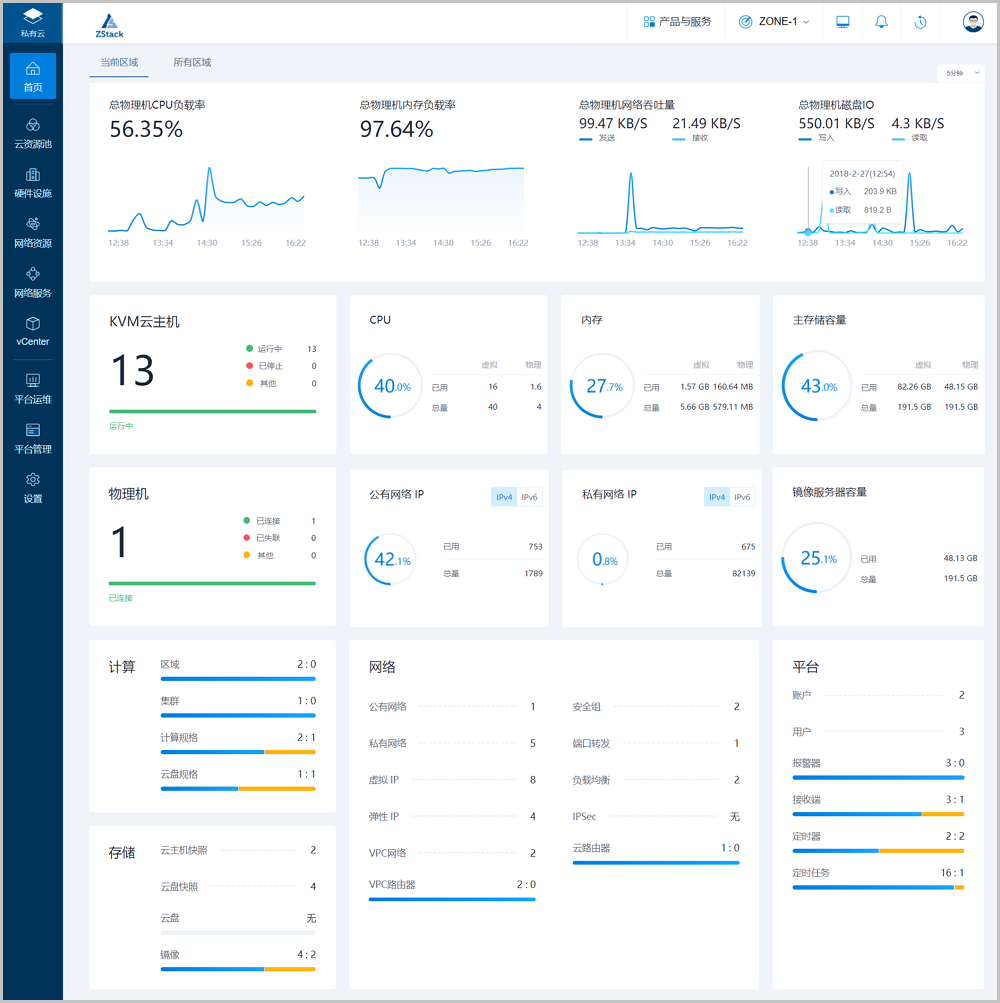 - 产品与服务快速入口:基于UI Map为用户提供了ZStack私有云全局资源概览,详情可参考产品与服务快速入口章节。