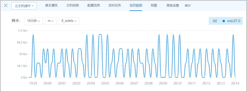 可选择不同的时间跨度来监控云主机网卡的实时情况(单位:B/s)
