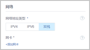 点击添加网卡按钮,在弹出的添加网卡页面,需要填写以下参数:Figure 5. 选择双栈网络