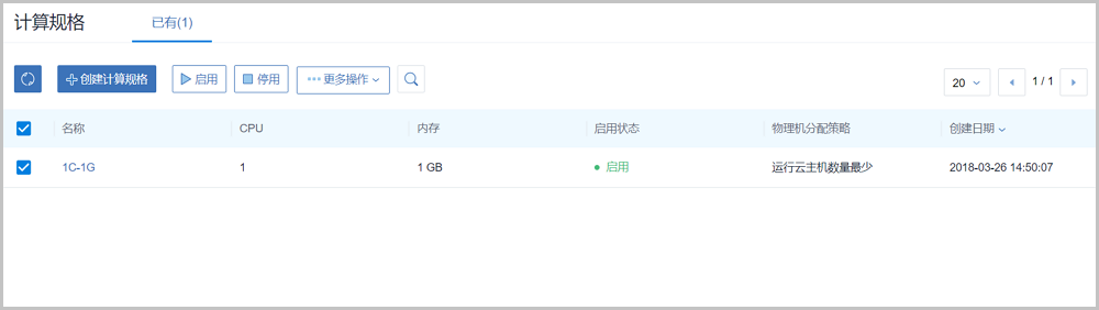 - 停用:停止使用某个计算规格,停止后不能再用其创建云主机,但不影响之前已创建的云主机。支持批量操作。