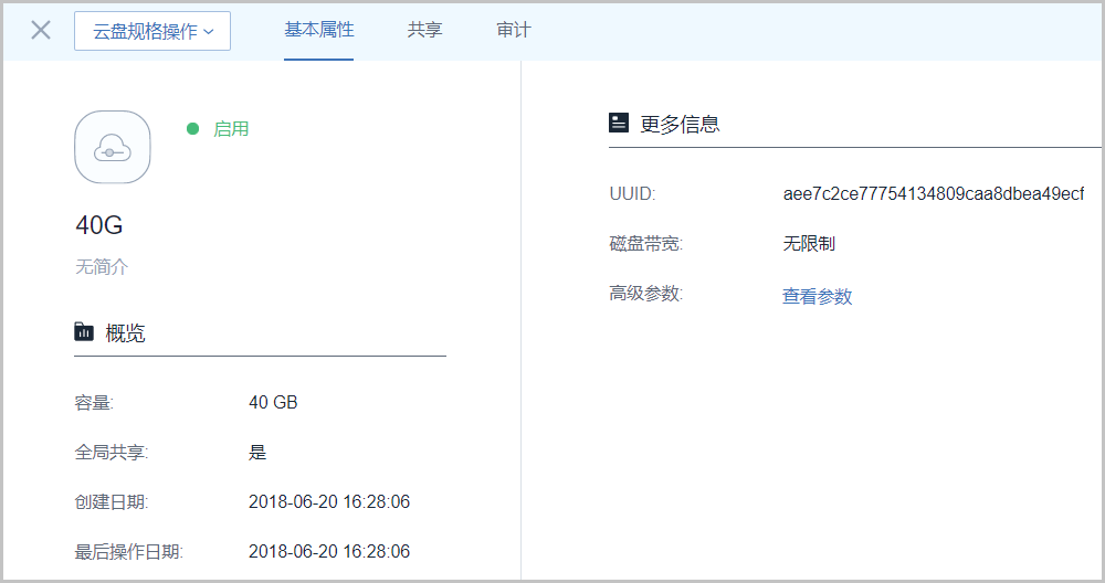 - 基本属性:概括了此云盘规格的基本信息。在此栏可以修改云盘规格的名称和简介。