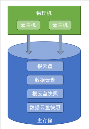 主存储:用于存储云主机磁盘文件(包括:根云盘、数据云盘、根云盘快照、数据云盘快照、镜像缓存等)的存储服务器。