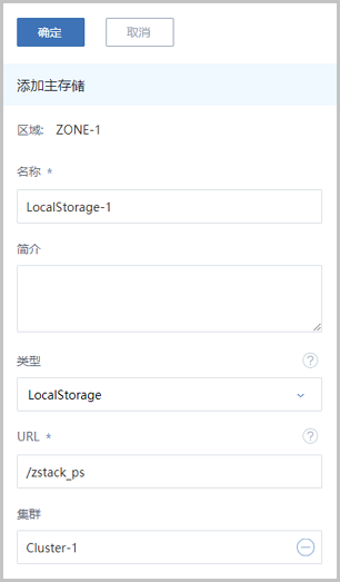 在ZStack私有云主菜单,点击按钮,进入主存储界面,点击添加主存储按钮,弹出添加主存储界面,可参考以下示例输入相应内容: