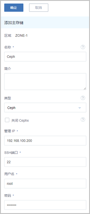 本章节仅介绍ZStack私有云界面如何添加Ceph主存储。