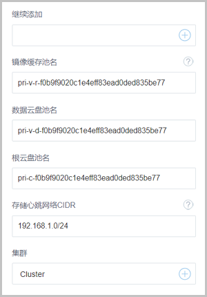 - 根云盘池名:输入根云盘池名,如果不填,系统会自动为用户创建这三个池