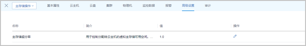 - 高级设置该子页面列出了主存储的高级设置项,可以在主存储粒度设置主存储超分率等。此设置只对该主存储内的资源生效,如不设置则默认使用全局设置的值。Note: 用户需理解并设置正确的主存储使用阈值后再进行配置。数值过大可能会严重影响存储性能,请谨慎操作。如Figure 7所示: