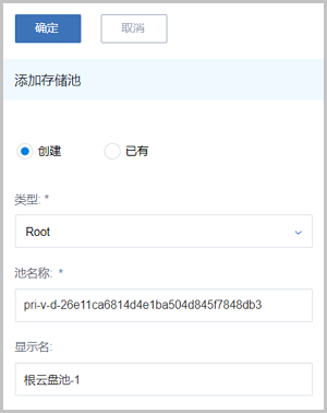 - 类型:选择添加存储池的类型,包括:Data(数据云盘池)、Root(根云云盘池)