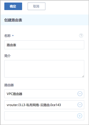 - 路由器:可选项,可在创建路由表时指定待挂载的路由设备,也可创建路由表后再挂载路由设备