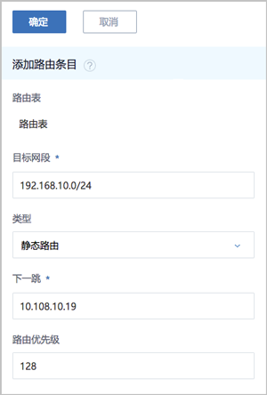 - 优先级:路由优先级设置范围为:1~254,数据越大,表示优先级越低