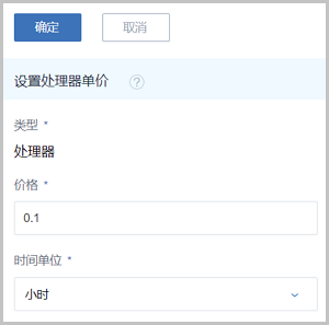 在计费设置的处理器子页面,点击设置处理器单价按钮,可参考以下示例输入相应内容:Figure 2. 设置处理器计费单价