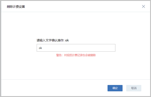 删除:删除已设置的计费单价Note: 删除计费单价,对应的计费记录也会被删除;如果删除所有计费规则,则计费信息清零。