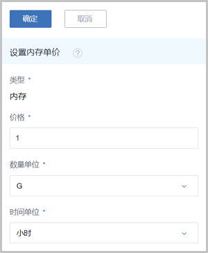 在计费设置的内存子页面,点击设置内存单价按钮,可参考以下示例输入相应内容:Figure 3. 设置内存单价
