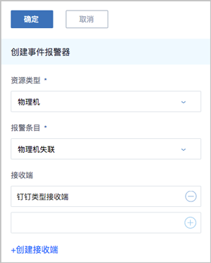 - 物理机已连接:默认物理机已连接报警器。默认监控云平台所有物理机。任意物理机从失联状态恢复连接,即可触发报警。默认触发云平台消息通知,绑定接收端之后,可通过接收端接收报警消息