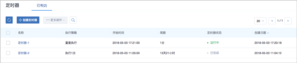 - 选择选择次数:定时任务按周期有限次执行,需设置执行次数Note: 对于周期内有限次执行的定时器,当定时任务执行完后,定时器状态将显示为已完成。