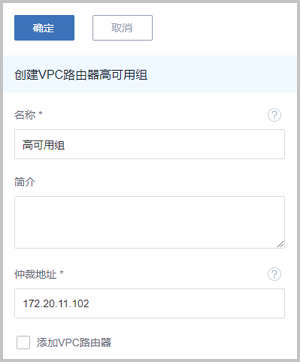 Note: 创建完成后需在高可用组详情页,待确定VPC路由器主备关系后设置DNS,以确保VPC路由器正常运行。