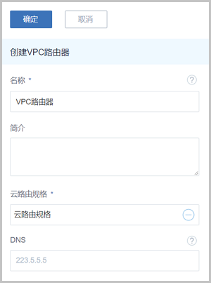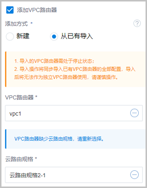 - 若选择的VPC路由器缺少云路由规格,则需要手动选择云路由规格