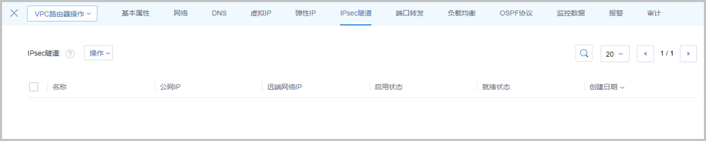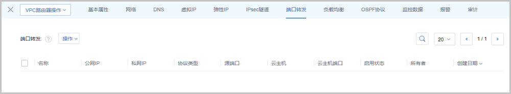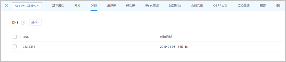 支持在当前VPC路由器下创建或删除DNS/弹性IP/IPsec隧道/端口转发/负载均衡器/自定义虚拟IP。