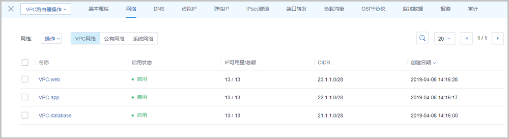 - 创建:支持创建VPC网络并加载到VPC路由器。