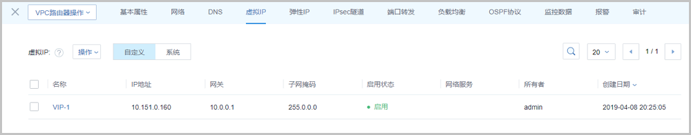 - 创建:VPC路由器成功创建后,由系统自动创建,该系统虚拟IP地址就是VPC路由器默认公网IP地址。