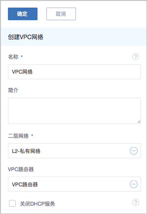 - 须提前创建二层网络,用于创建三层的VPC网络;