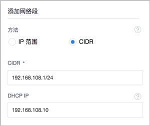 Note: 选择CIDR添加网络段需注意:- CIDR内首个IP地址已被默认为网关;