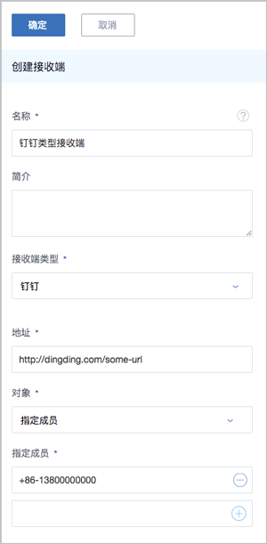 如Figure 2所示:Figure 2. 创建钉钉类型接收端