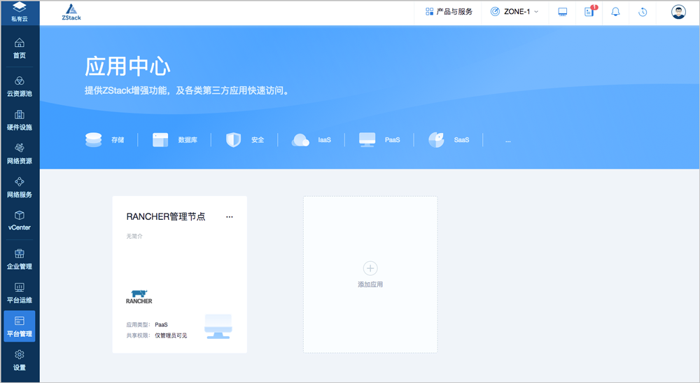 - 应用类型:选择添加应用的类型,不同的类型在主界面可显示不同的图标。可选项:存储、数据库、安全、IaaS、PaaS、SaaS