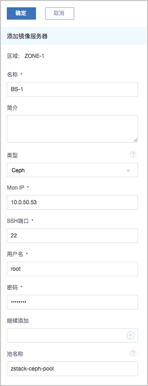 - 支持对Ceph镜像服务器指定特定的存储池,若留空不填,系统将默认自动创建;