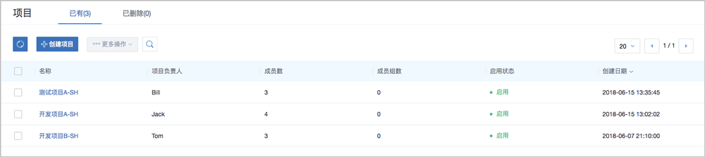 - 删除:项目被删除后,处于已删除状态,项目禁止登录,项目内相关资源将会停止