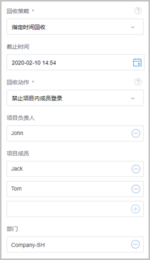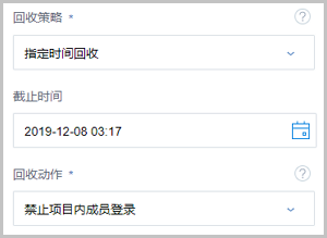 如选择指定时间回收,需设置以下内容:- 截止时间:设置项目到期时间