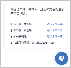 - 创建项目前,云平台内的基本资源(计算规格、镜像、网络等)建议提前共享或创建;