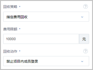如选择指定费用回收,需设置以下内容:- 费用限额:设置项目到期的费用限额