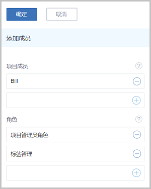 在项目成员界面,点击添加项目成员按钮,弹出添加项目成员界面,可参考以下示例输入相应内容: