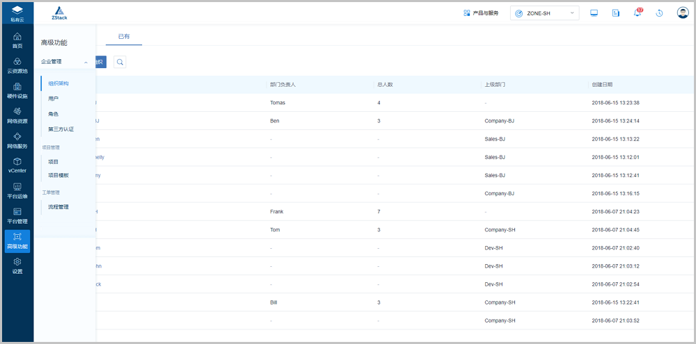 本章节主要介绍admin/平台管理员/普通平台成员如何使用企业管理功能。