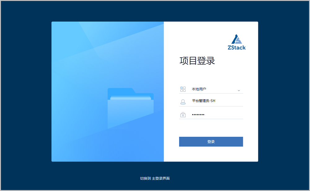 - 平台管理员/普通平台成员从项目登录入口登录云平台使用Chrome浏览器或FireFox浏览器打开项目登录界面(http://your_machine_ip:5000/#/project),输入相应用户名和密码登录云平台。其中,包括两种入口: