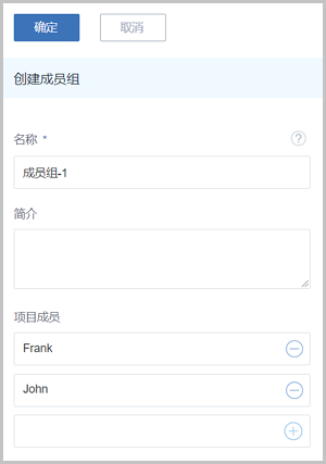 在成员组界面,点击创建成员组按钮,弹出创建成员组界面,可参考以下示例输入相应内容: