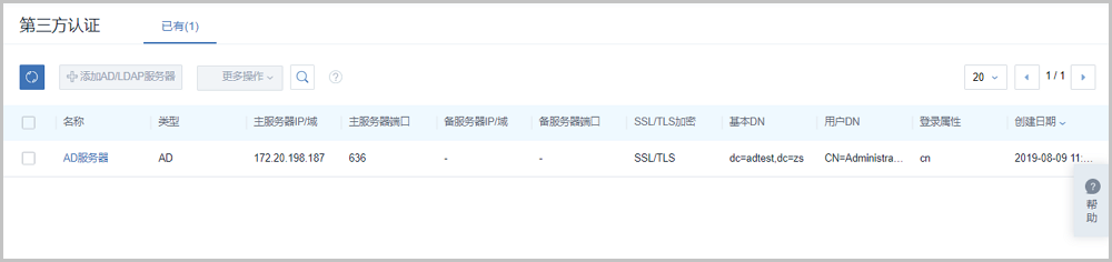 点击添加的AD服务器名称进入AD服务器详情页,如Figure 5所示:Figure 5. AD服务器详情页