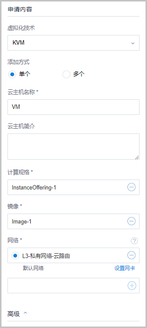 - 申请内容:设置云主机申请内容