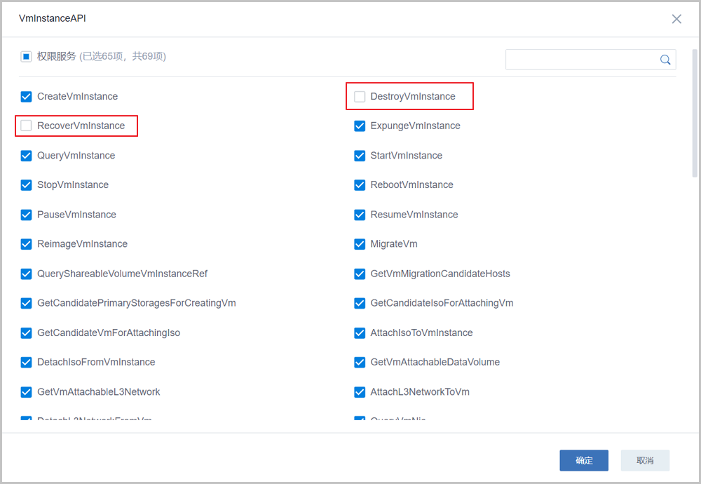若使用工单删除云主机,建议admin将普通项目成员的删除云主机权限(DestroyVmInstance)、恢复云主机权限(RecoverVmInstance)禁用,如