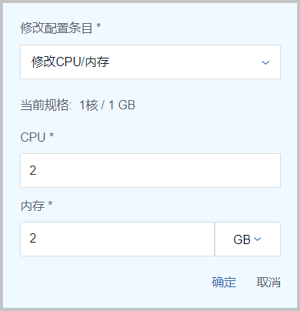 - 支持修改其中一个参数,例如:仅修改CPU核数时,内存大小输入与当前规格相等即可。
