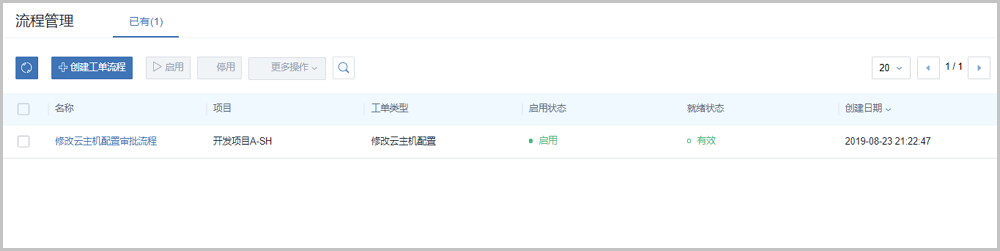 - 同一工单流程支持用于多种工单类型(申请云主机、删除云主机、修改云主机配置)。