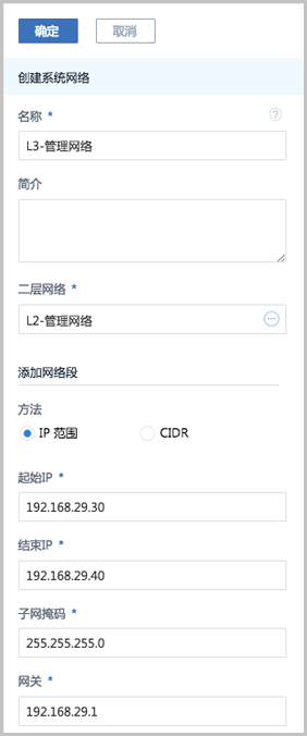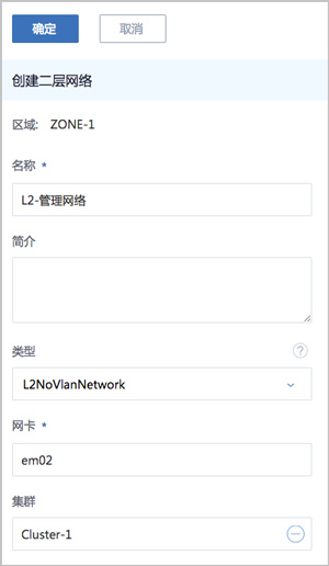 - 此管理网络与ZStack私有云中的管理网络为相同概念(即:管理物理机、主存储、镜像服务器的网络),如果已创建可直接复用。