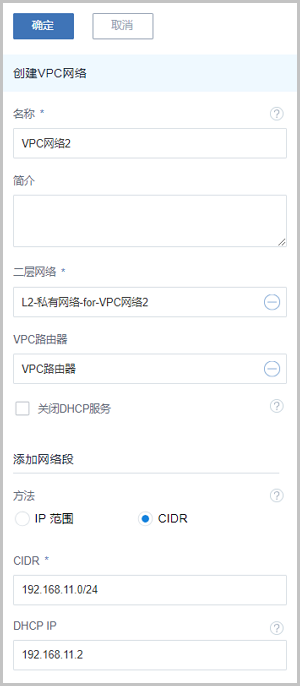 - 指定VPC路由器,创建三层的VPC网络2,注意网络段不可重叠。